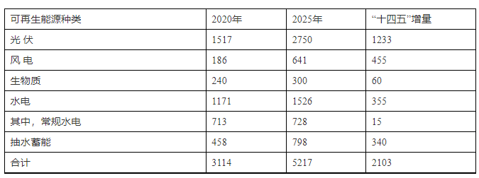 浙江省十四五主要可再生能源品种发展目标